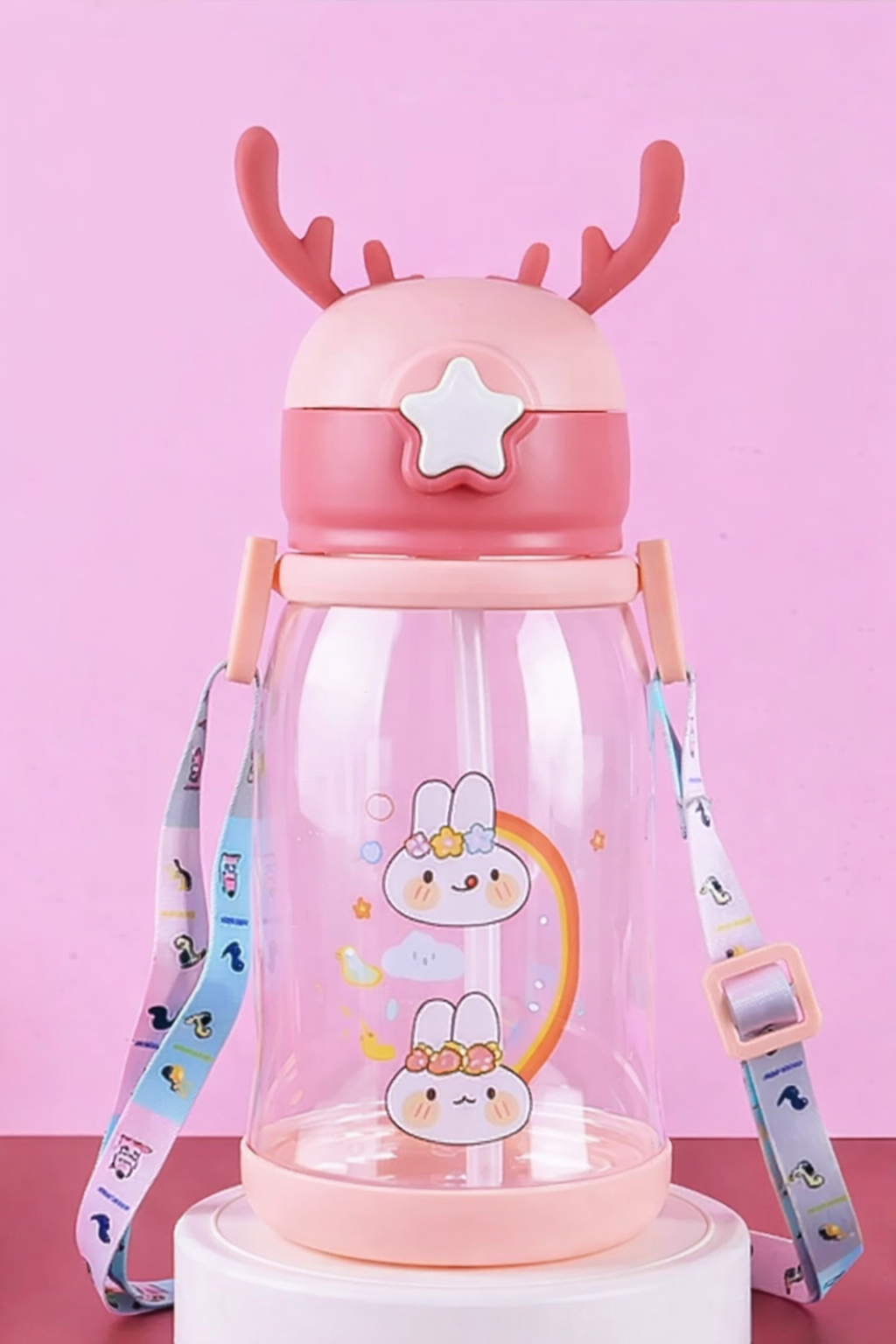 Deer Horn Shape Water Bottle with Cartoon Character for Kids(600ml) – Colour May Vary